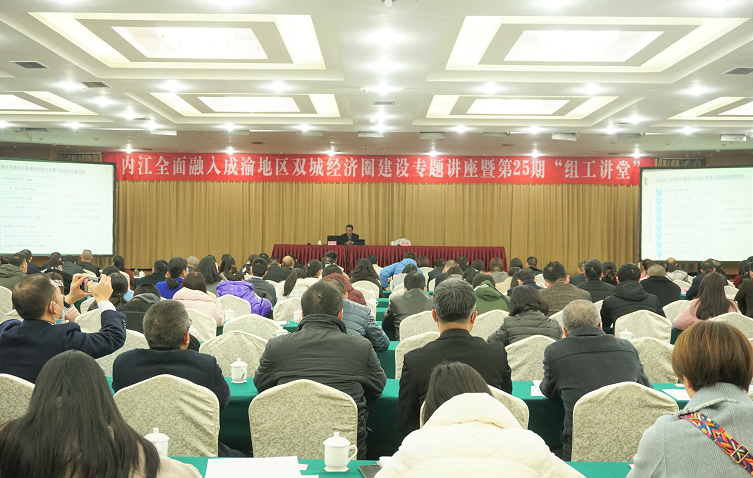 11月23日,内江市召开内江全面融入成渝地区双城经济圈建设专题讲座暨第25期“组工讲堂”。四川省区域经济研究会会长、西南交通大学区域经济与城市管理研究中心主任、教授戴宾受邀作专题讲座,为内江全面融入成渝地区双城经济圈建言献策。内江市委常委、组织部部长苟小莉主持讲座。