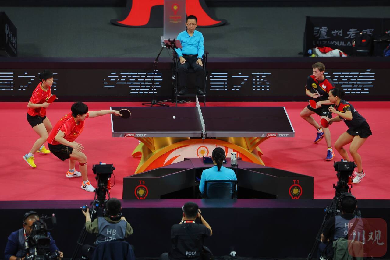 在与德国队的比赛中,中国队的教练组派出“莎头组合”王楚钦/孙颖莎、王曼昱以及马龙出战。不过第一场混合双打比赛,“莎头组合”出师不利,他们8∶11先丢一局。随后两局比赛,王楚钦/孙颖莎很快调整状态,在以11∶7拿下第二局之后,又以11∶2赢下第三局,大比分2∶1击败德国队的头号混双组合塞德里克·迈斯纳/万远。