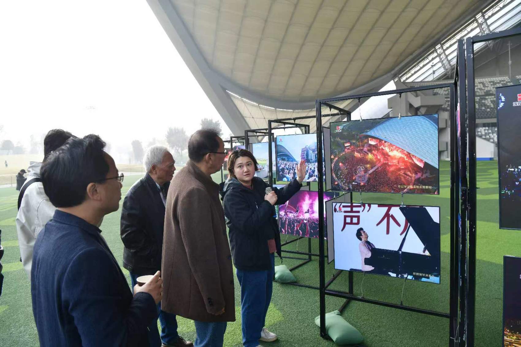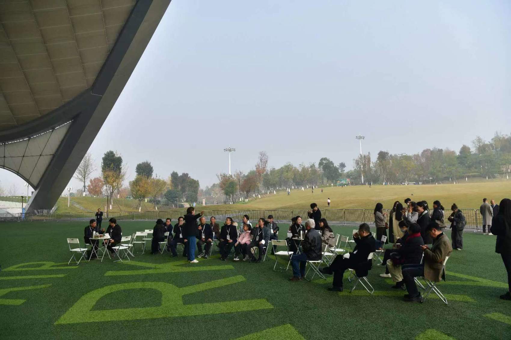 川观文学奖(2022年度)的获奖作家与“金牛·川观文学季”2022年度川观文学奖颁奖典礼的部分特邀嘉宾在成都露天音乐公园参观。
