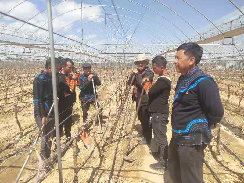 在物质文明建设中,乡村集体经济的作用不可小视。木耳山村作为曾经的贫困村,将壮大集体经济提上重要的议事日程,并将其作为脱贫致富的核心指标之一。作为党支部书记,潘作布坚守着“为天地立心,为生民立命”的初心,驻村引领村民务农重本,高效农业种出富民路。2018年,潘作布顺应新时代农村发展理念,在坝区以流转40亩土地发展现代高效农业示范园区——葡萄产业园区,有效解决了木耳山村常年“空壳村”的难题,有效推进了脱贫摘帽、乡村振兴。