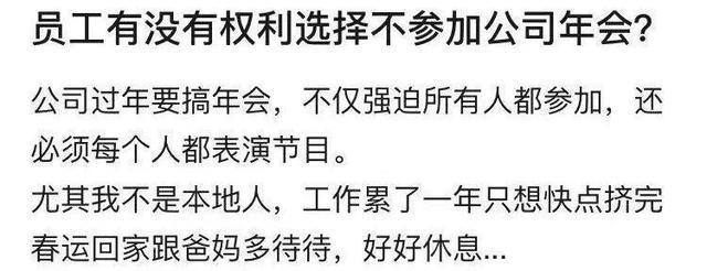 因为不参与年会而被扣除年终奖?面对这一问题,职工们普遍认为不去年会被扣年终奖、甚至被开除有些匪夷所思,年会是职工们聚会的活动,而非工作绩效、能力的表现。