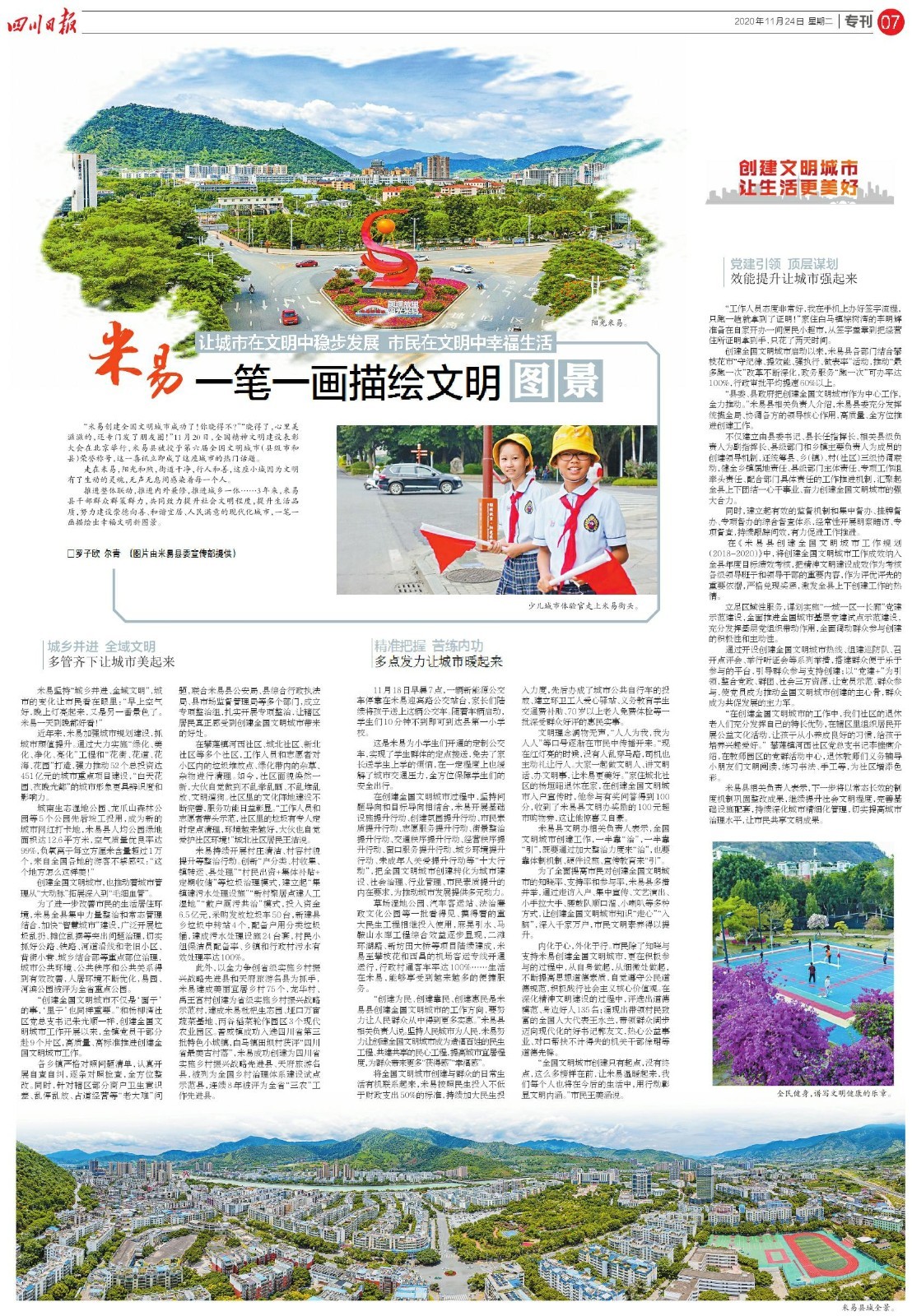 “米易创建全国文明城市成功了!你晓得不?”“晓得了,心里美滋滋的,还专门发了朋友圈!”11月20日,全国精神文明建设表彰大会在北京举行,米易县被授予第六届全国文明城市(县级市和县)荣誉称号,这一喜讯立即成了这座城市的热门话题。