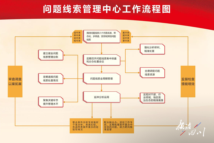 线索渠道来源窄,是制约审查调查高质量推进的“瓶颈”,如何破解?德阳市成立问题线索管理中心,围绕“信中来、审中来、巡中来、检中来、案中来、督中来、诉中来、事中来”八个方面主动收集问题线索,进行全方位、多角度比对分析,变“等案上门”为“出门找案”。