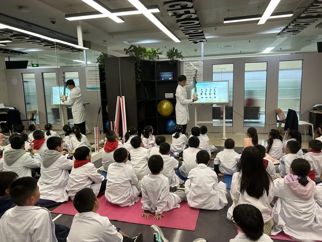 运动康复促进中心康复师李其健带领大家认识青少年脊柱侧弯的预防与治疗,指导孩子们在日常生活和学习中,端正坐姿,保护好我们的脊柱。