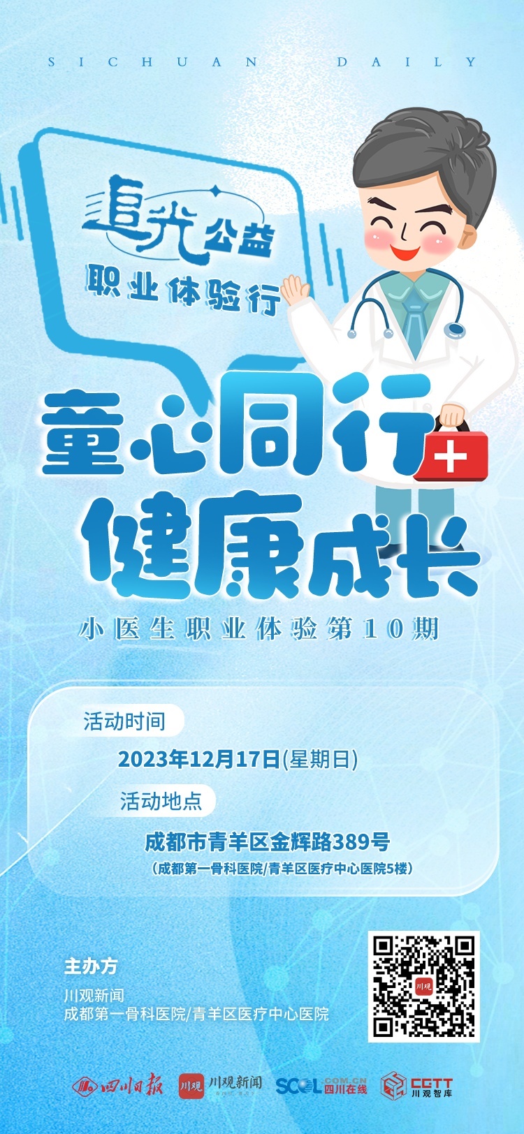 12月17日,川观新闻联合成都第一骨科医院/青羊区医疗中心医院推出第十期“小医生”职业体验主题活动。