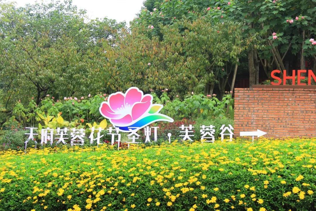走进圣灯·芙蓉谷,盛开的芙蓉、五彩斑斓的花境、形象生动的“蓉妹儿”“蓉宝”,主题鲜明,极具感染力。