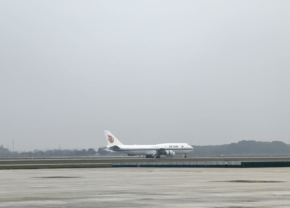 习近平主席夫人彭丽媛,中共中央政治局常委、中央办公厅主任蔡奇,中共中央政治局委员、外交部部长王毅,中共中央书记处书记、公安部部长王小洪等陪同人员同机抵达。