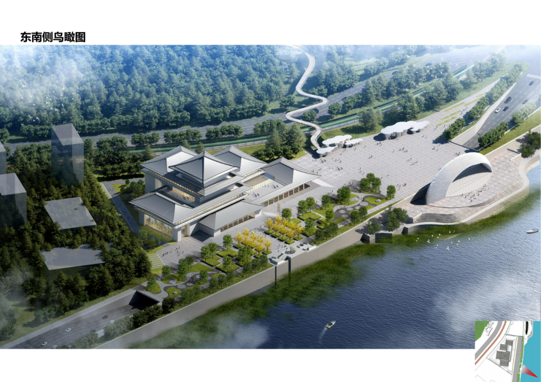 广元素有“女皇故里”“川北门户”之称,唐文化元素在广元城市文化中呈现较多。新建的广元市博物馆将结合唐代建筑风格、四川传统建筑特色和广元文化元素,主题为“蜀韵唐风”,突出“蜀韵飘逸、唐风博大”,既突出历史神韵又符合新时代需求。主体建筑采用建筑楼阁形式,展现唐风建筑的“沉稳厚重、平直舒展、挑檐深远”。同时,凸显四川民居和本地文物遗迹的建筑文化元素,整体呈现高低错落、轻盈灵动的外观,体现蜀韵唐风的“优美灵动、结构轻盈、朴实飘逸”。