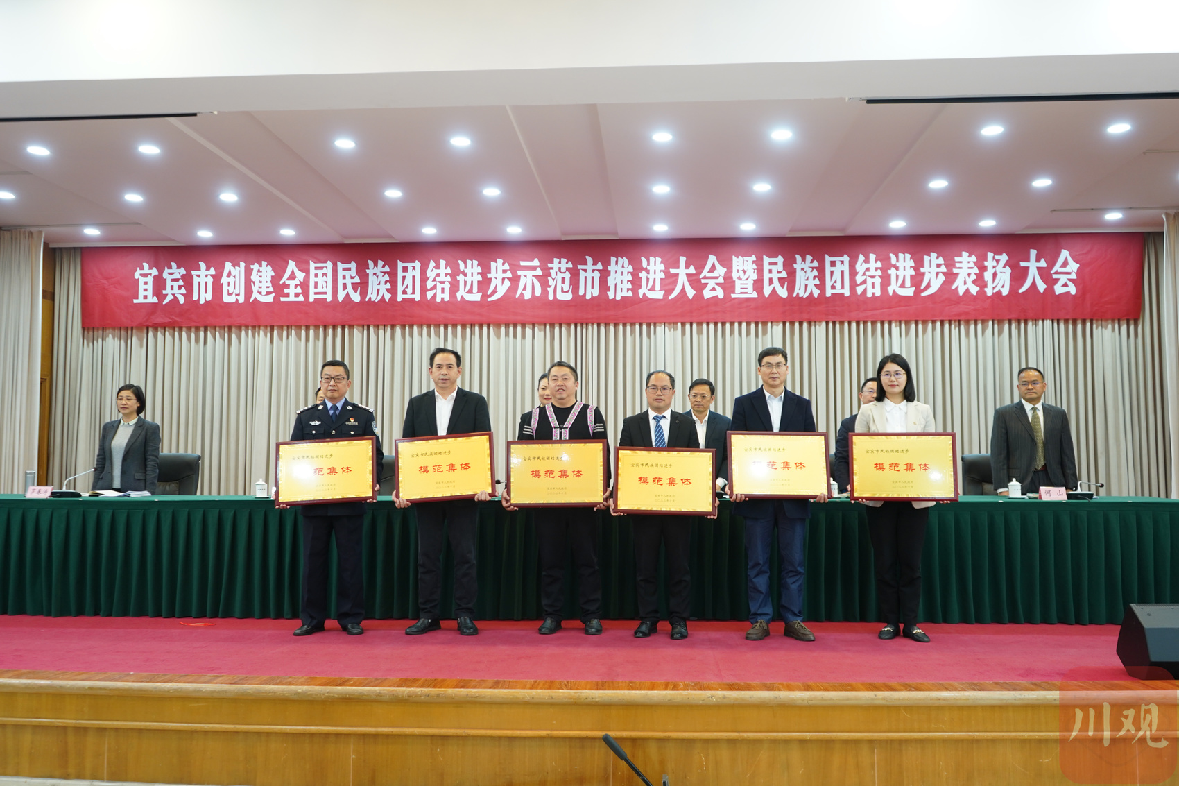 为表扬先进、树立典型,宜宾市对全市民族团结进步模范集体和个人进行了通报表扬,还命名了58个民族团结进步创建工作成效明显的单位为第二批宜宾市民族团结进步示范区示范单位,并在会上进行了颁奖。
