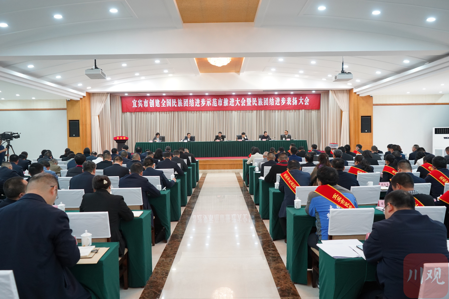 12月11日,宜宾市创建全国民族团结进步示范市推进大会暨民族团结进步表扬大会在宜宾市委党校召开。大会表扬了59个模范集体和97名模范个人,目的是发挥先进典型示范带动作用,引导和鼓舞各族干部群众推动全市民族团结进步事业发展。