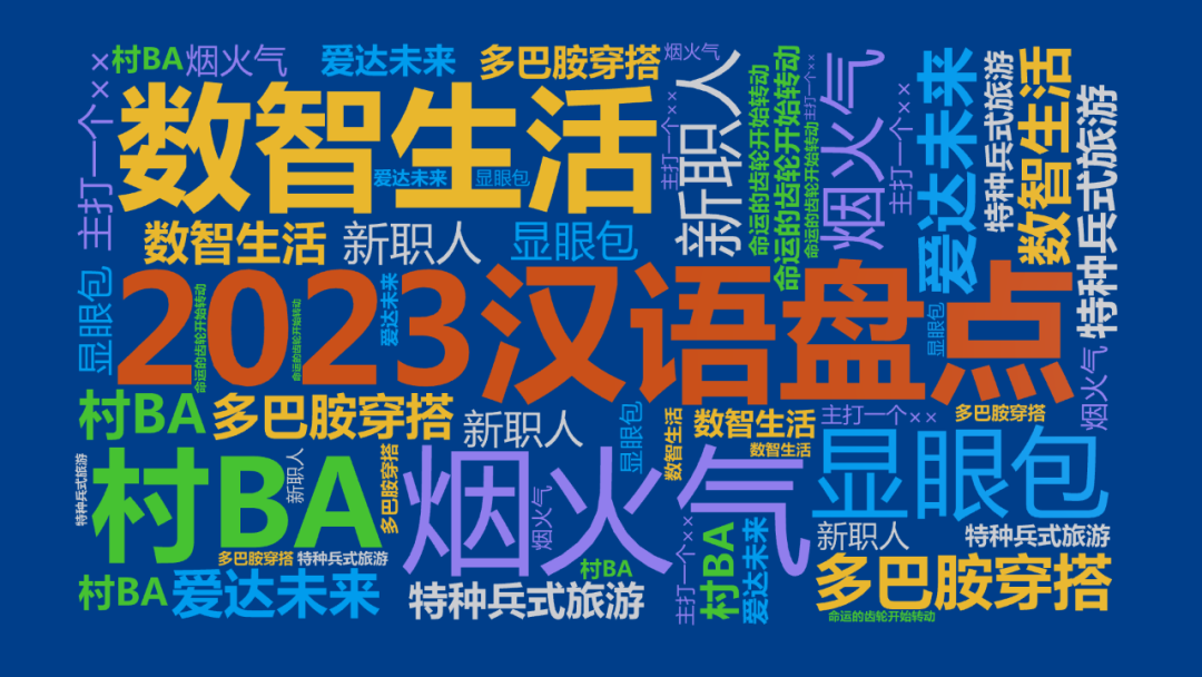 ▷12日,国家语言资源监测与研究中心发布2023年度十大网络用语,依次为:爱达未来、烟火气、数智生活、村BA、特种兵式旅游、显眼包、主打一个××、多巴胺穿搭、命运的齿轮开始转动、新职人。