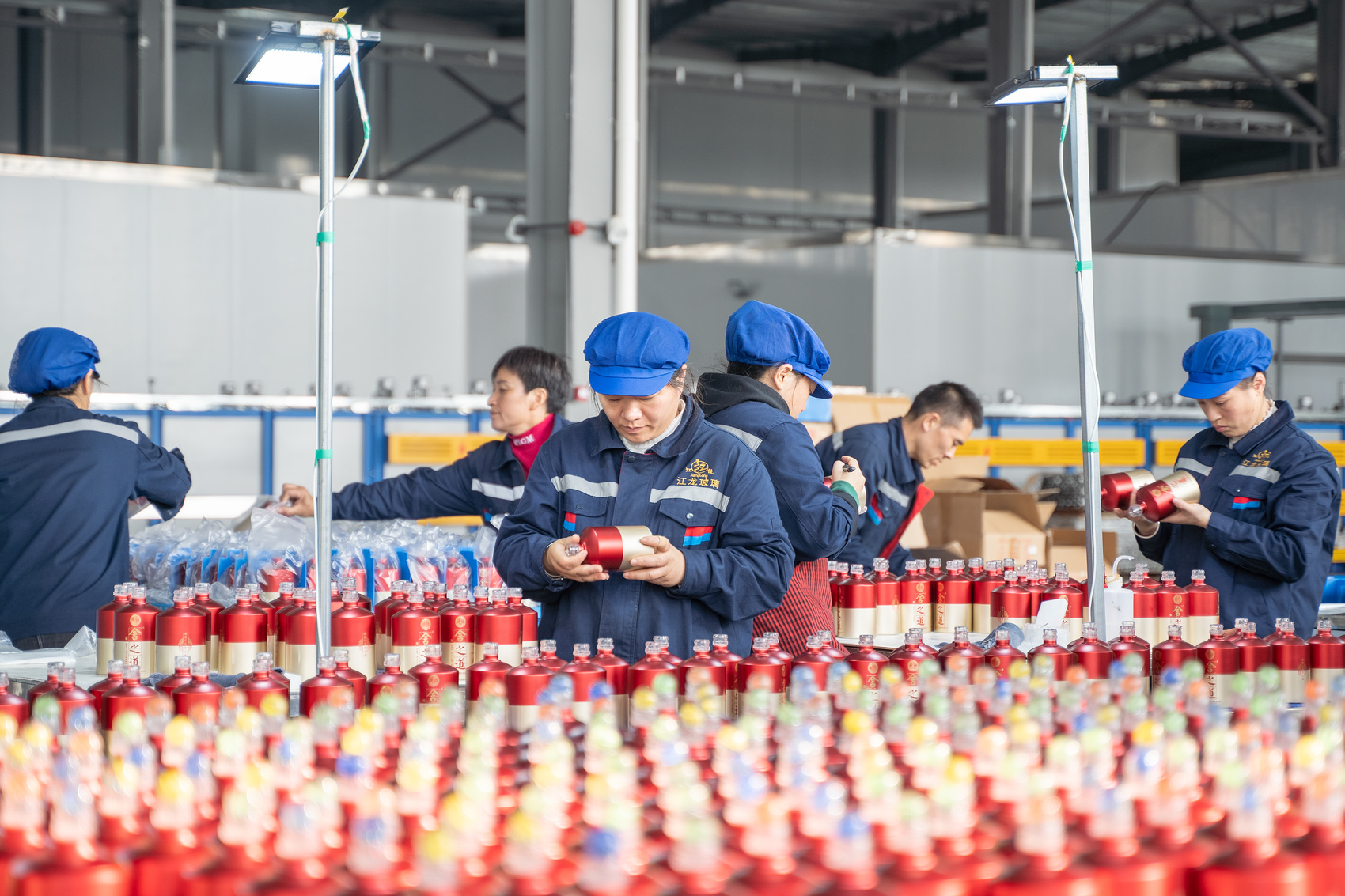 当天上午,数公里之外的隆昌市红光工业园区,四川省隆昌江龙玻璃工业有限公司工厂车间内,数十条生产线有序运行,一批批光洁明亮的酒瓶经过喷釉、贴花、丝印、烤花等工序,摇身一变成了身着一袭乳白色外衣的陶瓶,检测、下线、打包、装车,这些产品将运往四川射洪、贵州习水等地,配套习酒、沱牌等知名酒企。