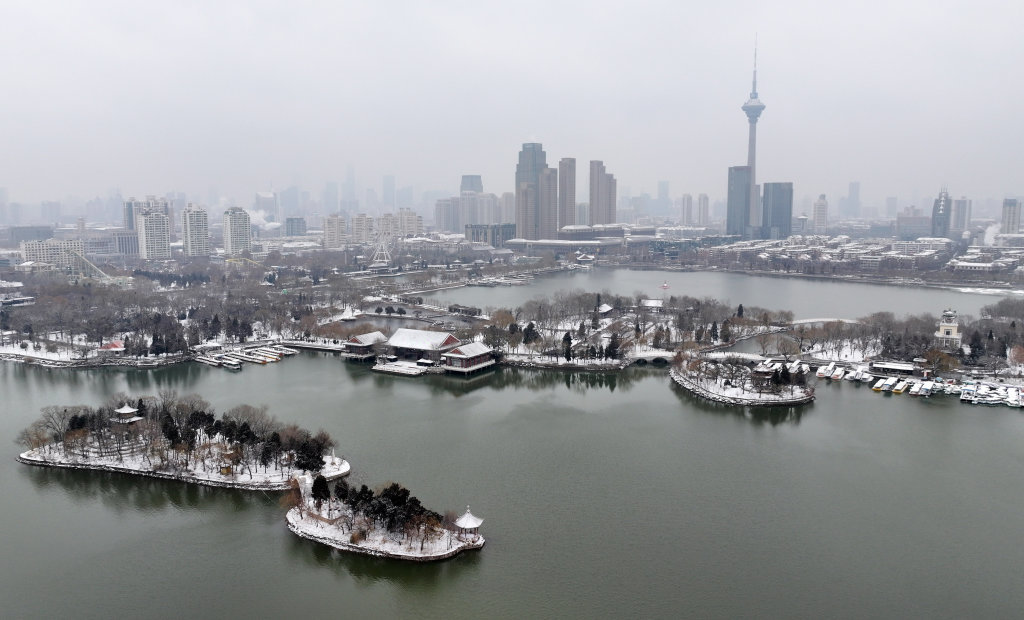 这是12月13日拍摄的天津水上公园(无人机照片)。