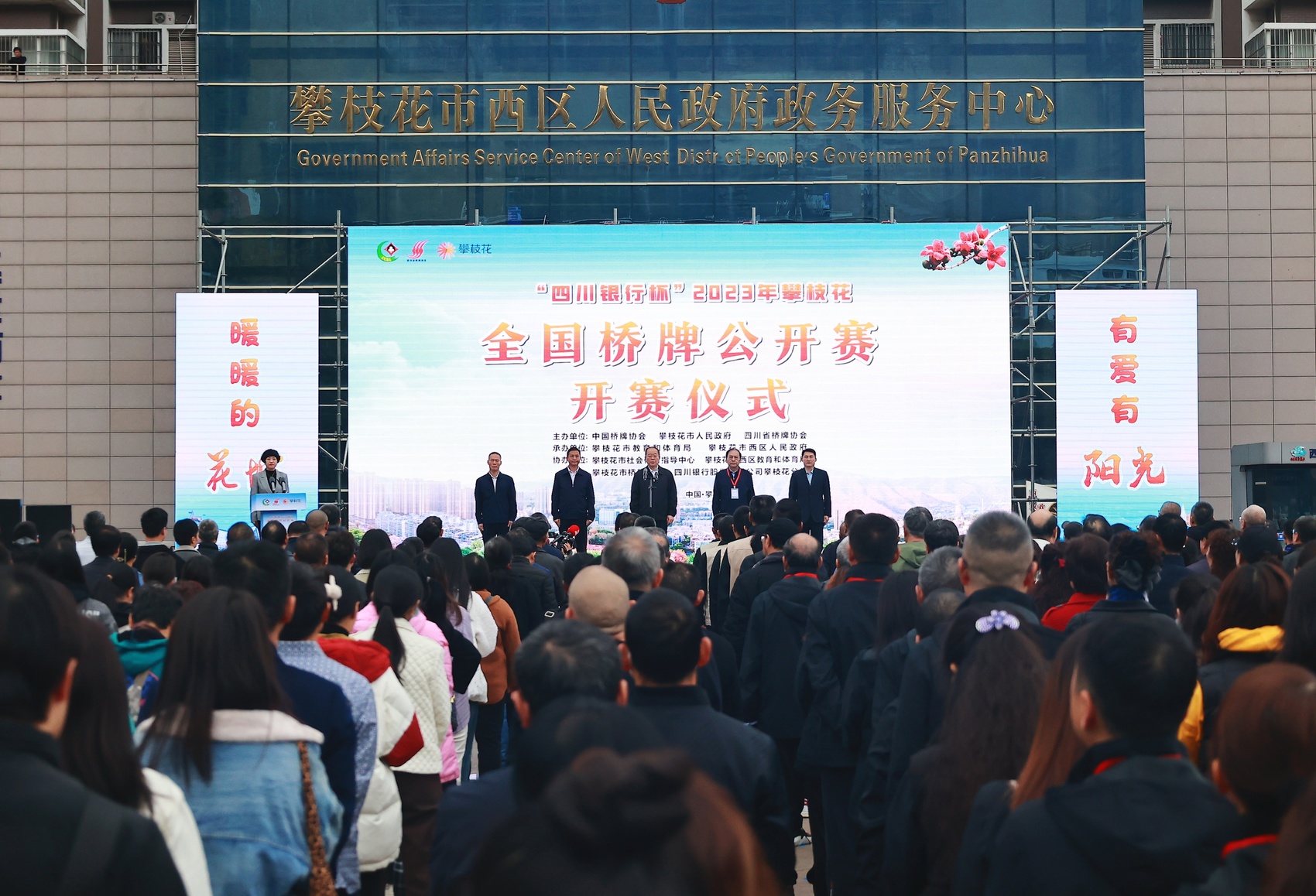 12月13日,“四川银行杯”2023年攀枝花全国桥牌公开赛在攀枝花市西区开赛,来自北京、浙江、上海等全国各地的56支代表队,共计308名教练员、运动员将在此切磋牌技、以牌会友。