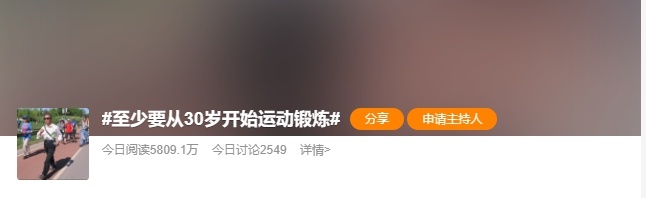 微博话题#至少要从30岁开始运动锻炼#登上热搜,截至今天上午10点,话题阅读数超过5800万。