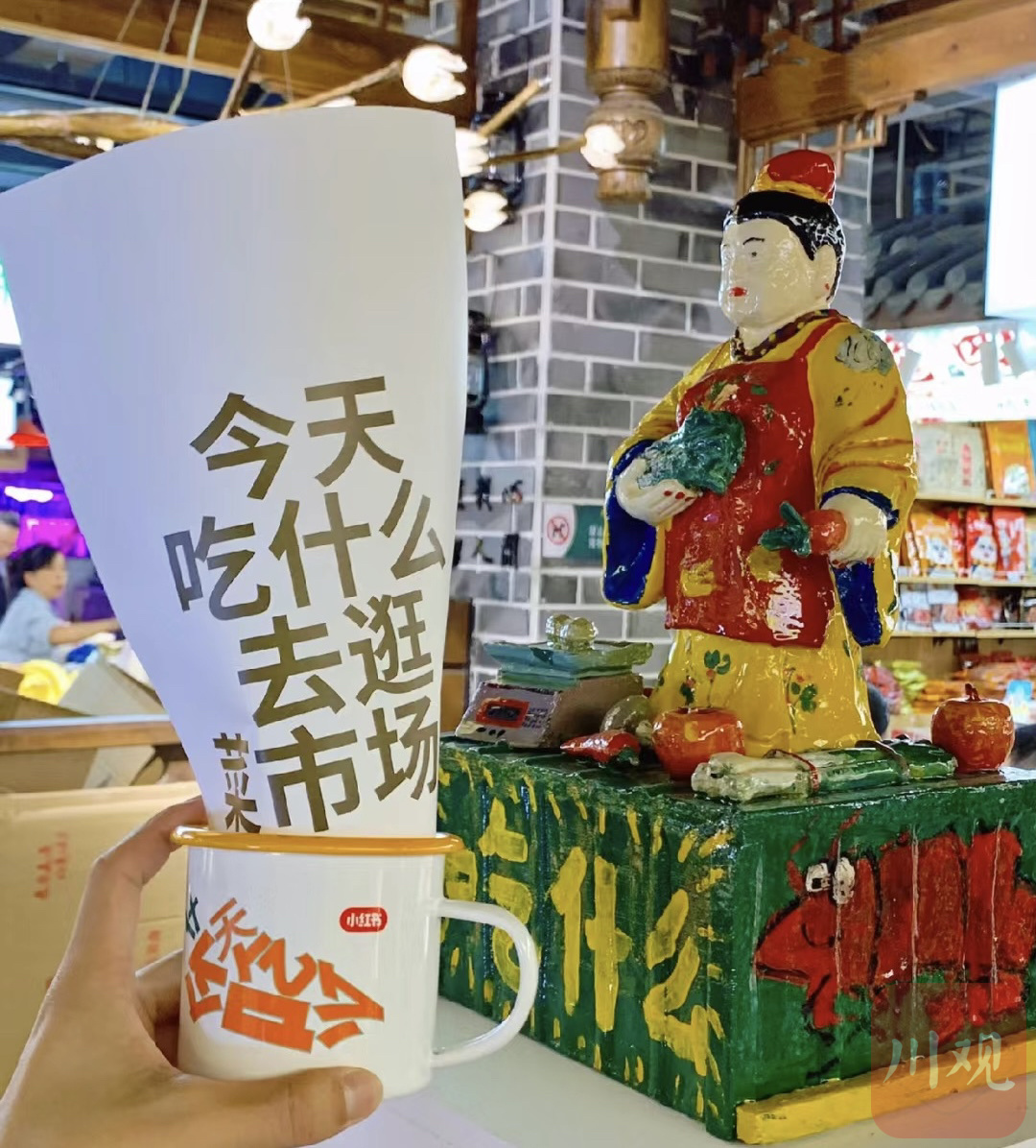 ▲成都益民菜市长顺街店 艺术家刘庆元作品《你要啥子》