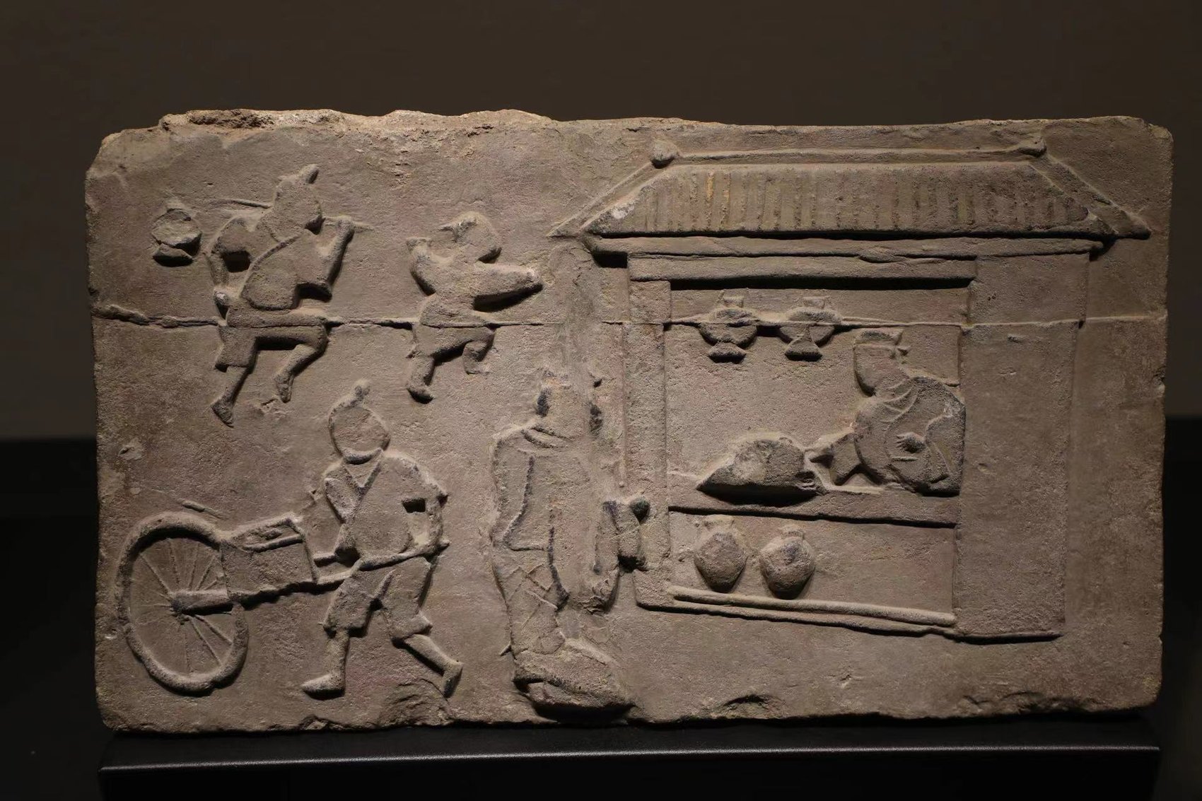 在这些反映时代风貌的画像砖中,有一块养老画像砖尤其值得一提。画面中,一肩负鸠杖的老者跪在地上,探头望着前面地上的一只口袋,神情十分认真专注,老者的对面,一赤足短裤者手捧一量器,弯腰向地上的袋中倒物。“这应该是管理粮仓的官员正在向老者发放粮食。”谢丹表示,“我们国家历来有爱老、敬老的传统,随着社会经济、文化的发展,汉朝出现了中国历史上最早的老年人权益保护法——‘养老令’,用于保障老人的生活。这幅养老画像,是汉代养老制度的生动反映,体现出汉代制度设计上对老人群体的特殊关照。”