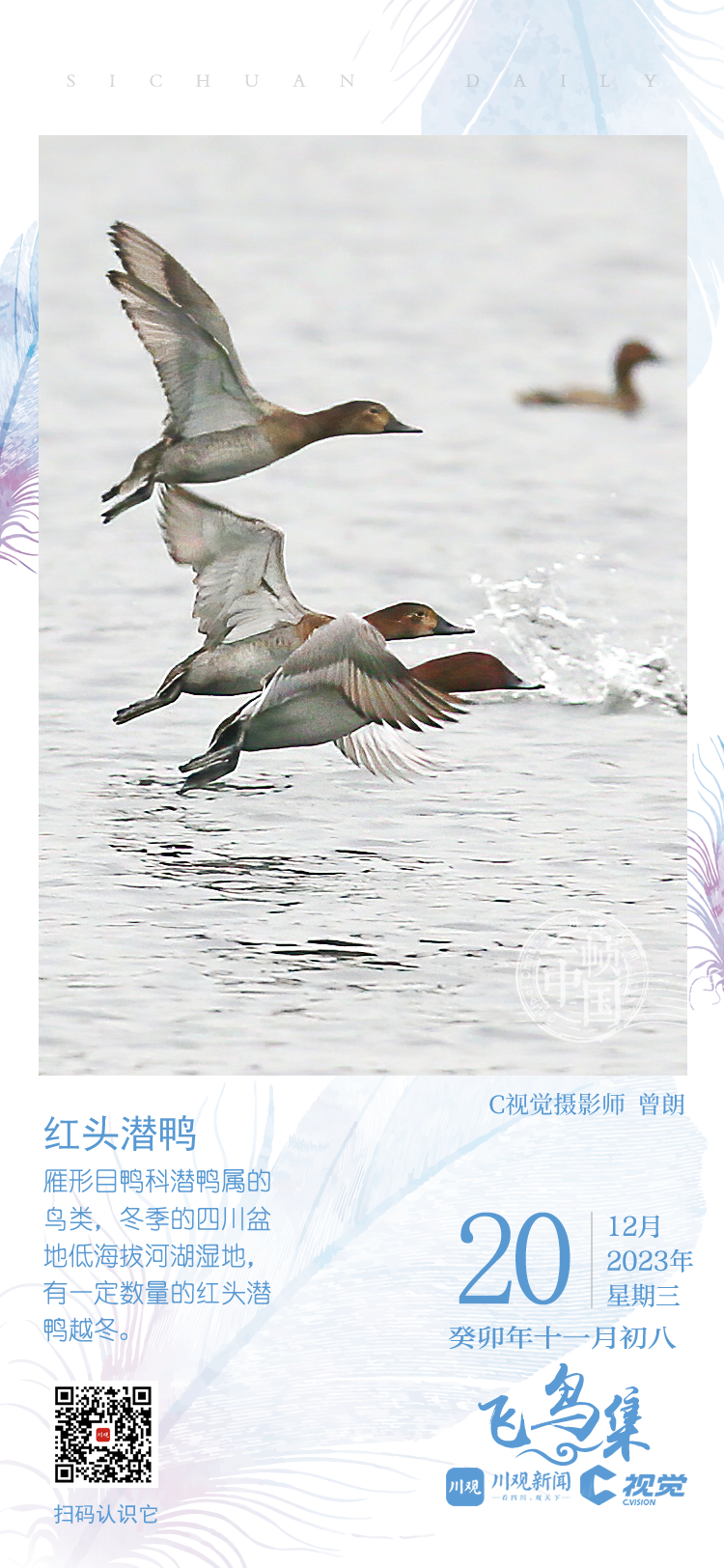 冬季的四川盆地低海拔河湖湿地,有一定数量的红头潜鸭越冬。