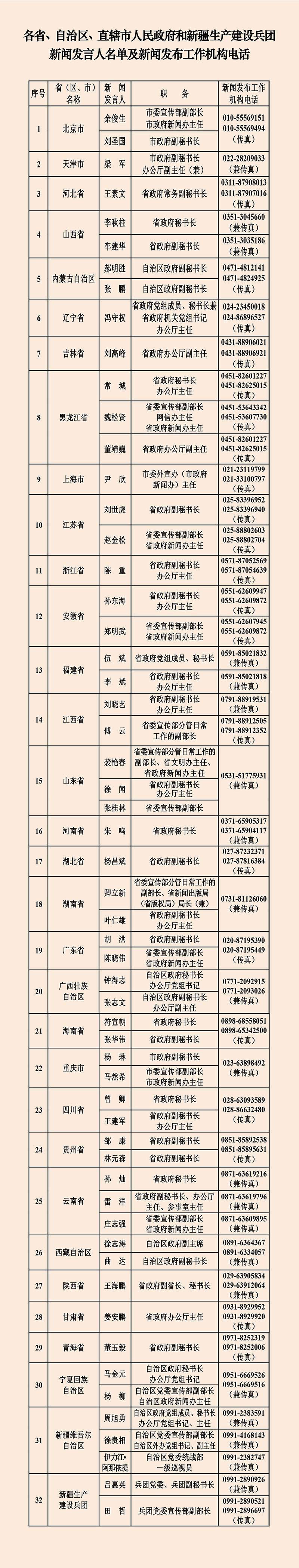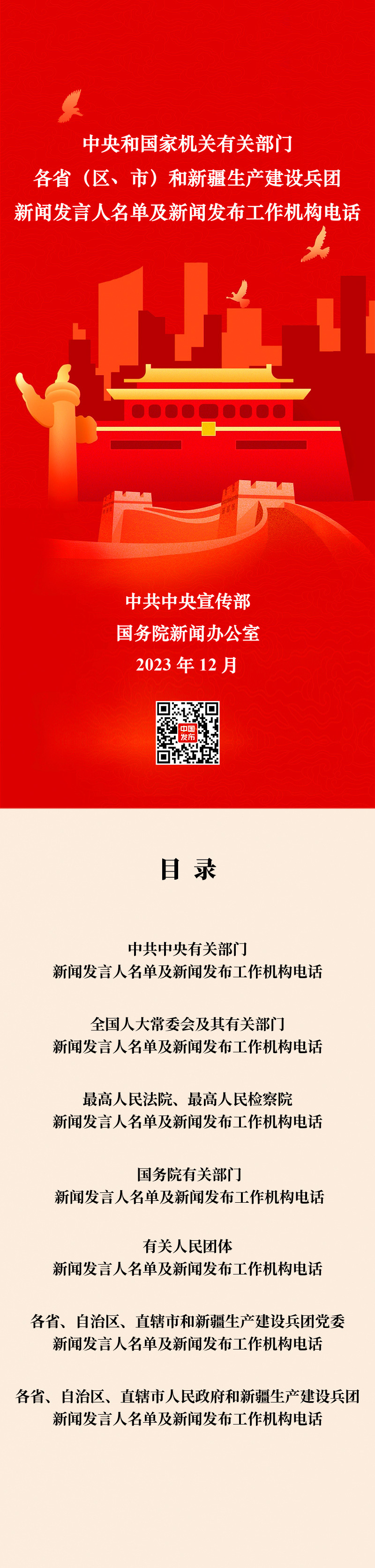 12月14日,国新办官网公布中央国家机关和地方2024年新闻发言人名录。