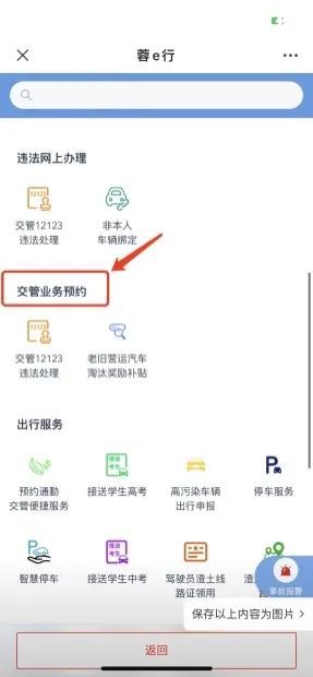 1.打开“蓉e行”微信公众号,点击首页“全部功能”菜单栏,选择“交管业务预约”,进入“老旧非营运汽车置换新能源汽车奖励申报”办理页面。