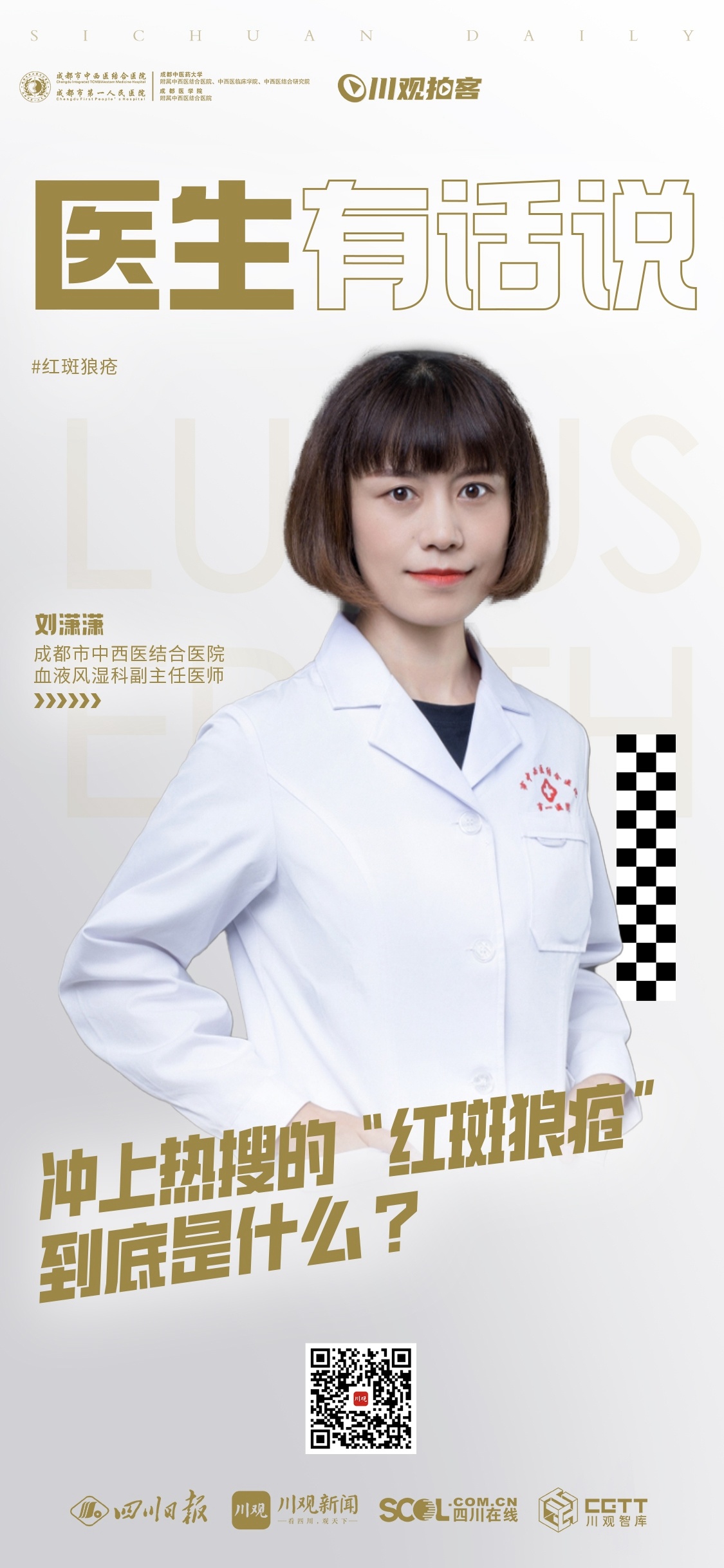 今天,来自成都市中西医结合医院血液风湿科的副主任医师刘潇潇,跟大家讲一讲什么是系统性红斑狼疮?其发病因素有哪些,应该如何治疗?以及该病的复发几率等问题,帮助大家进一步了解系统性红斑狼疮。