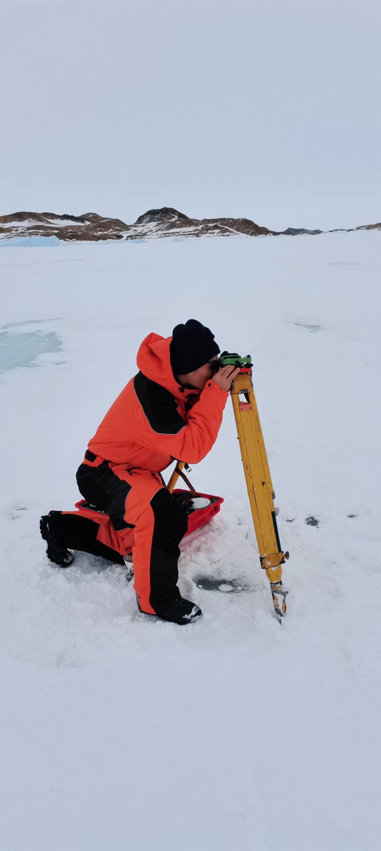 (▲麻源源正在执行冰面作业:接收机安装与调试)