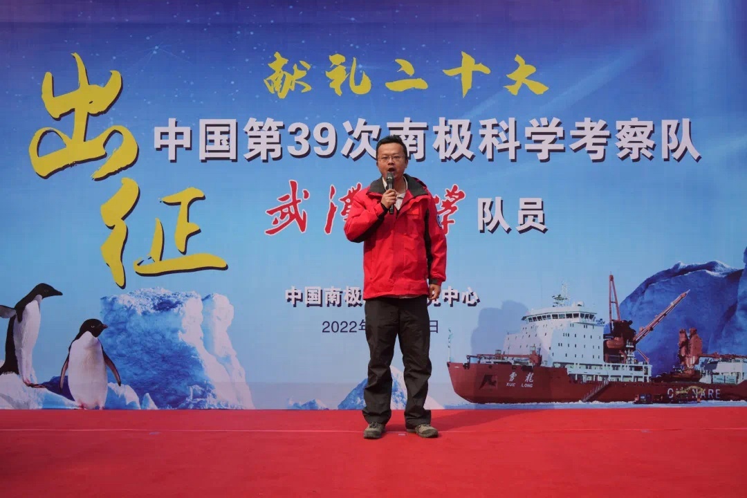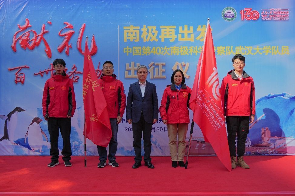 今年10月20日,李雪平、张保军、耿通、褚馨德4名武大师生庄重宣誓,武汉大学党委书记黄泰岩为队员们授旗并宣布,“中国第四十次南极科考队武汉大学队员出征”。