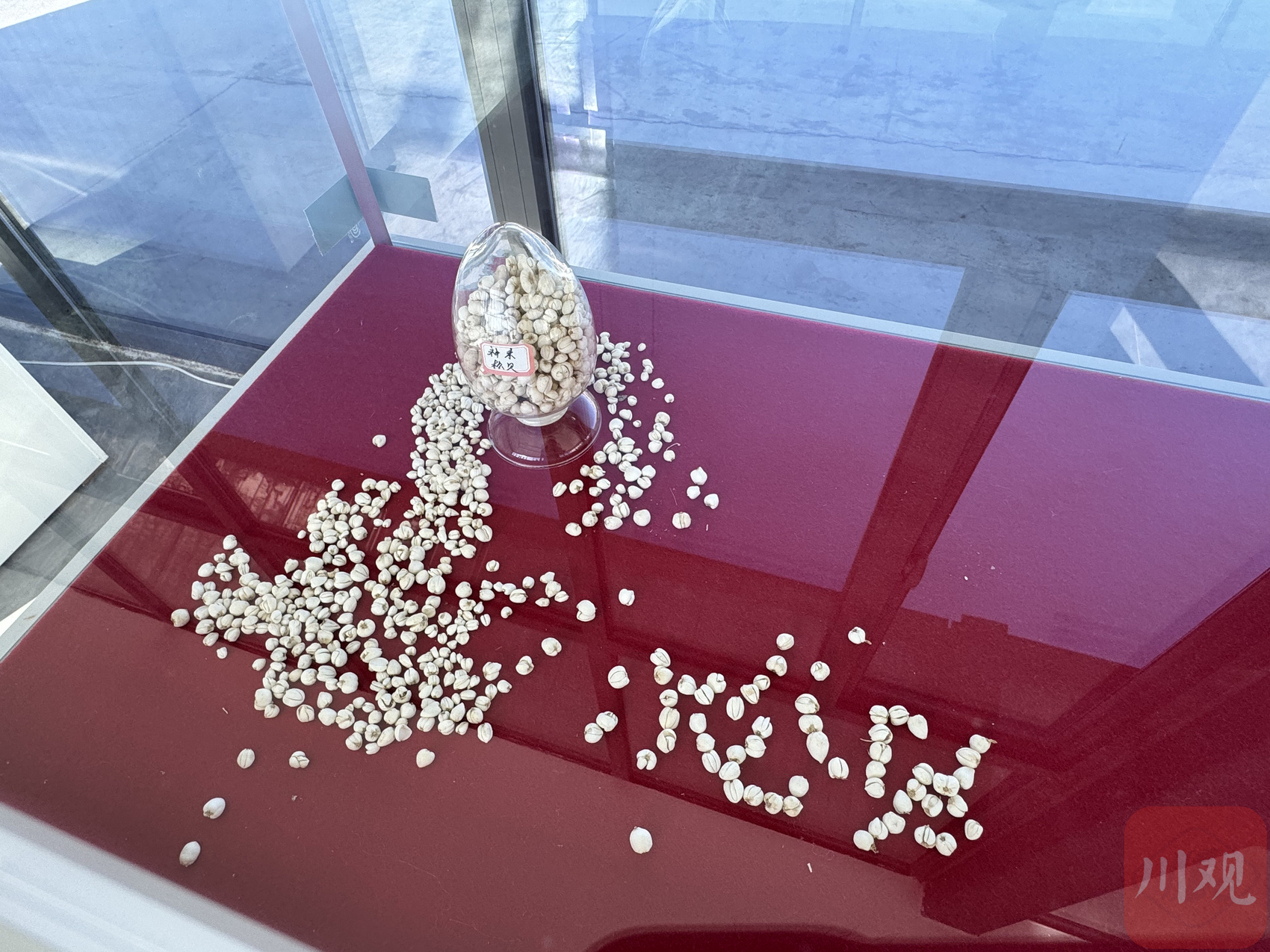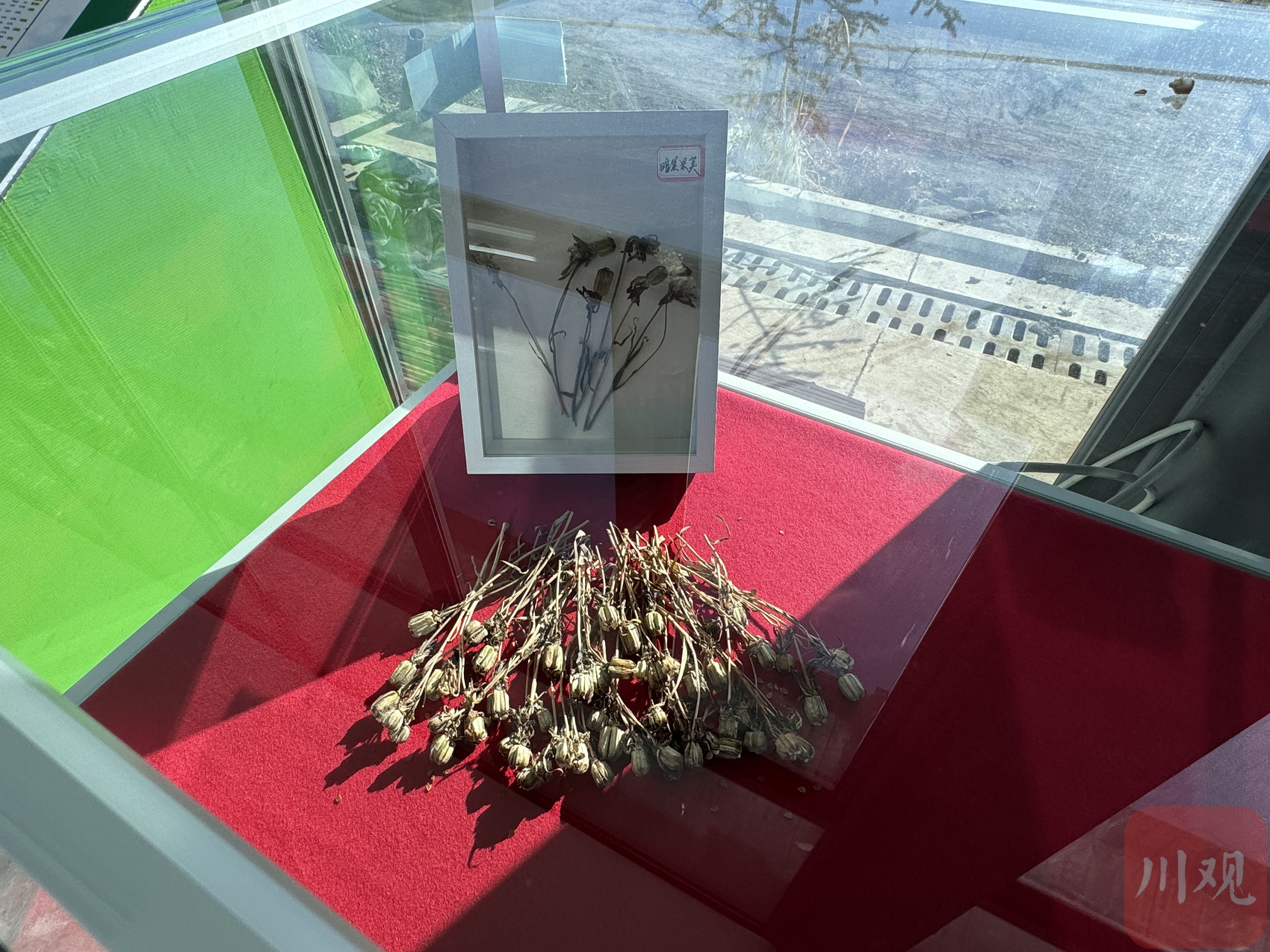 在基地的展示柜里,川贝母果荚标本引人注目。