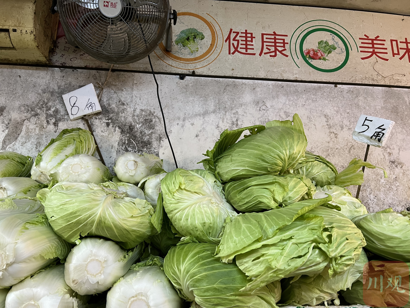 成都市武侯区簇锦街道一家菜店,大白菜8角一斤,莲花白5角钱一斤。