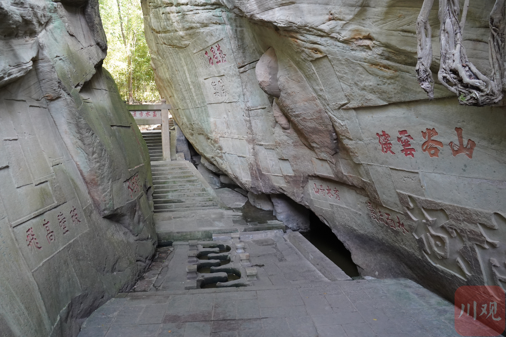 在宜宾众多名胜古迹中,最得酒趣之地莫过于流杯池。这座城北催科山下、巨石中开形成的峡谷,有溪水绕谷流淌。据说是黄庭坚仿“流觞曲水”意境造成,他们在此喝酒做诗,峡谷是酒峡,也渐成“诗峡”。