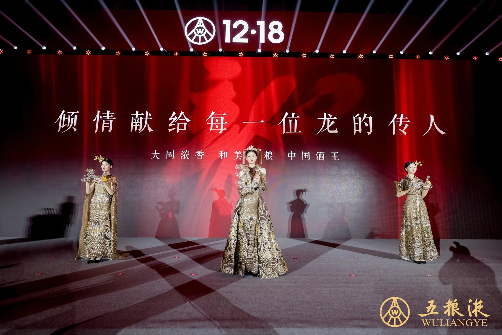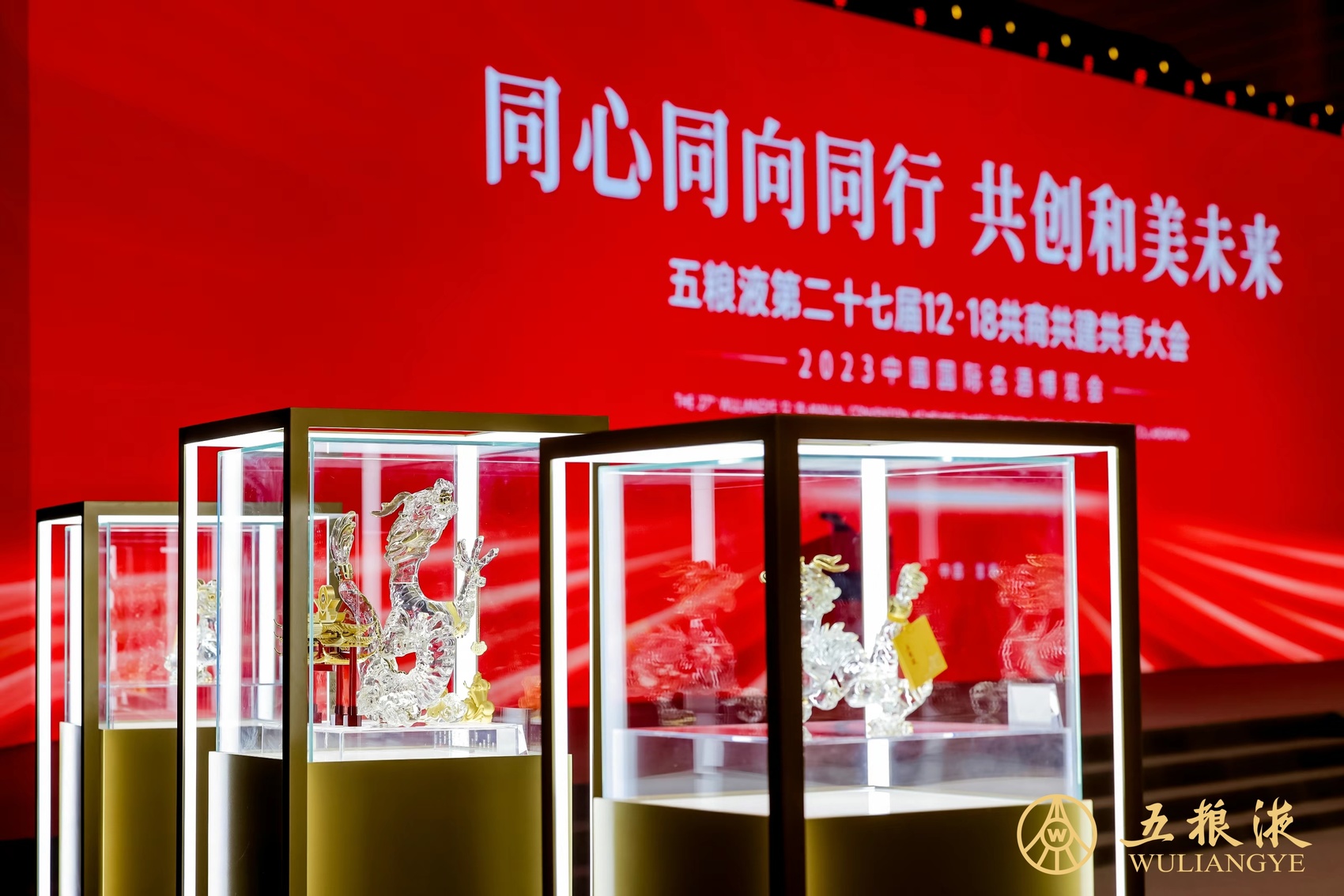 12月18日,以“同心同向同行 共创和美未来”为主题的五粮液第二十七届12·18共商共建共享大会在四川宜宾举行。作为本届大会的重要环节,五粮液·甲辰龙年生肖酒在会上重磅亮相。