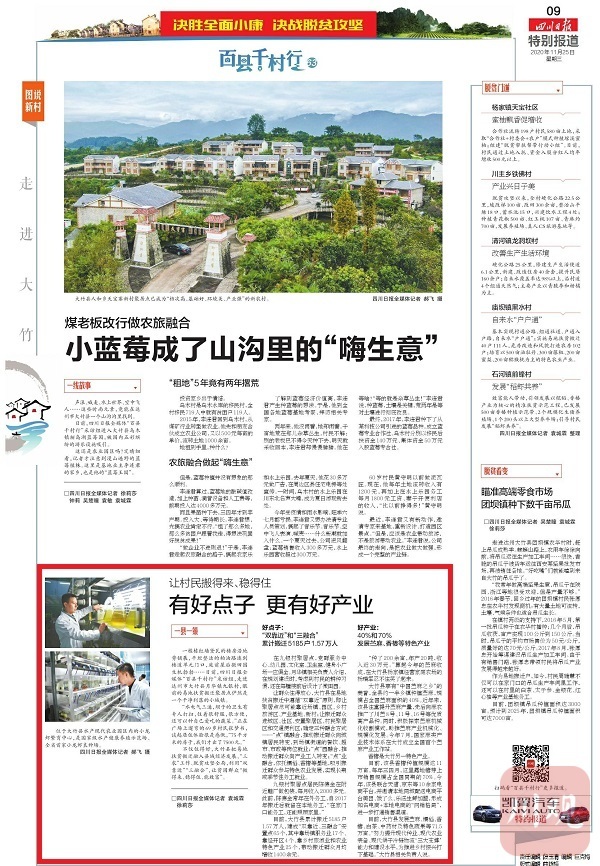 目前,大竹县发展苎麻、糯稻、香椿、白茶、中药材及特色蔬果等71.5万亩。“努力提升现代种业、现代农业装备、现代烘干冷链物流‘三大支撑’能力和建设水平,为推进乡村振兴打下基础。”大竹县相关负责人说。