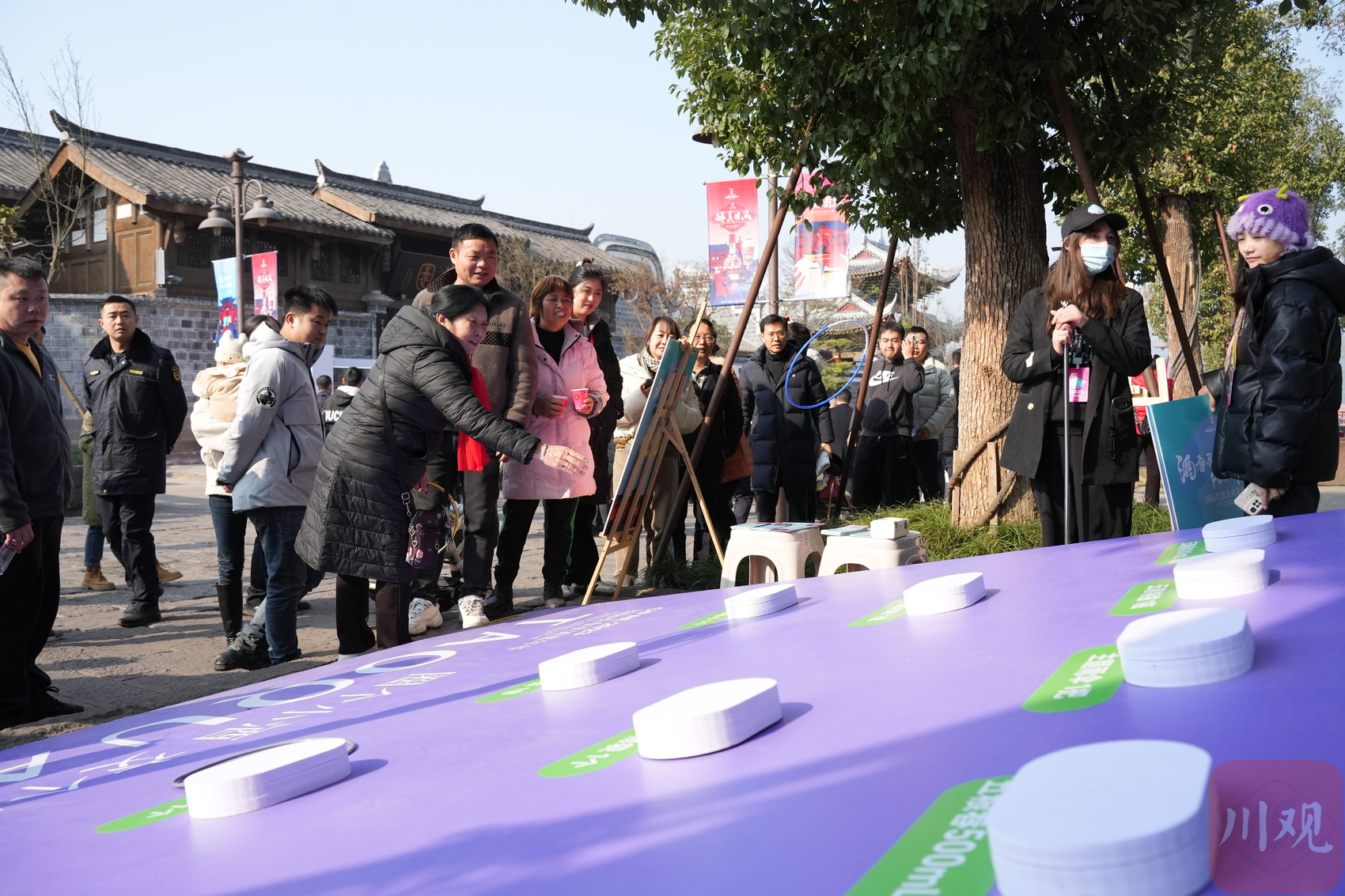 投壶、射箭、套圈、抓娃娃......在李庄古镇,人流如织,人们在互动打卡区域玩得不亦乐乎。大家手里拿着嘉年华游玩手册,根据展区地图概况、活动指引、游玩指引等内容,在各个名酒展览区域参观打卡、互动,集齐印章。