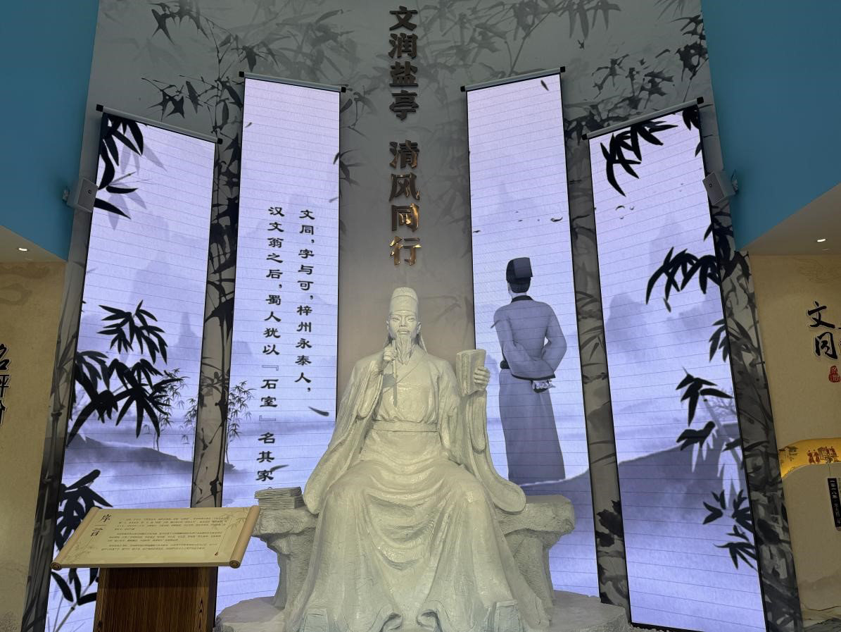 文同清风馆全馆布展从听觉、视觉、触觉等方面入手,综合运用实物、漆画、纸雕、场景复原和沉浸式体验等多种展陈方式,多维度、全方位展示文同的家风故事、勤廉的政治生涯、高雅的艺术人生,并融入盐亭风土人情和历史文化等“盐亭元素”,将知识性、教育性、趣味性相融合,“清风廉韵”与“科技感”相融合,共同构成文同清风馆“反腐倡廉”的主旋律。