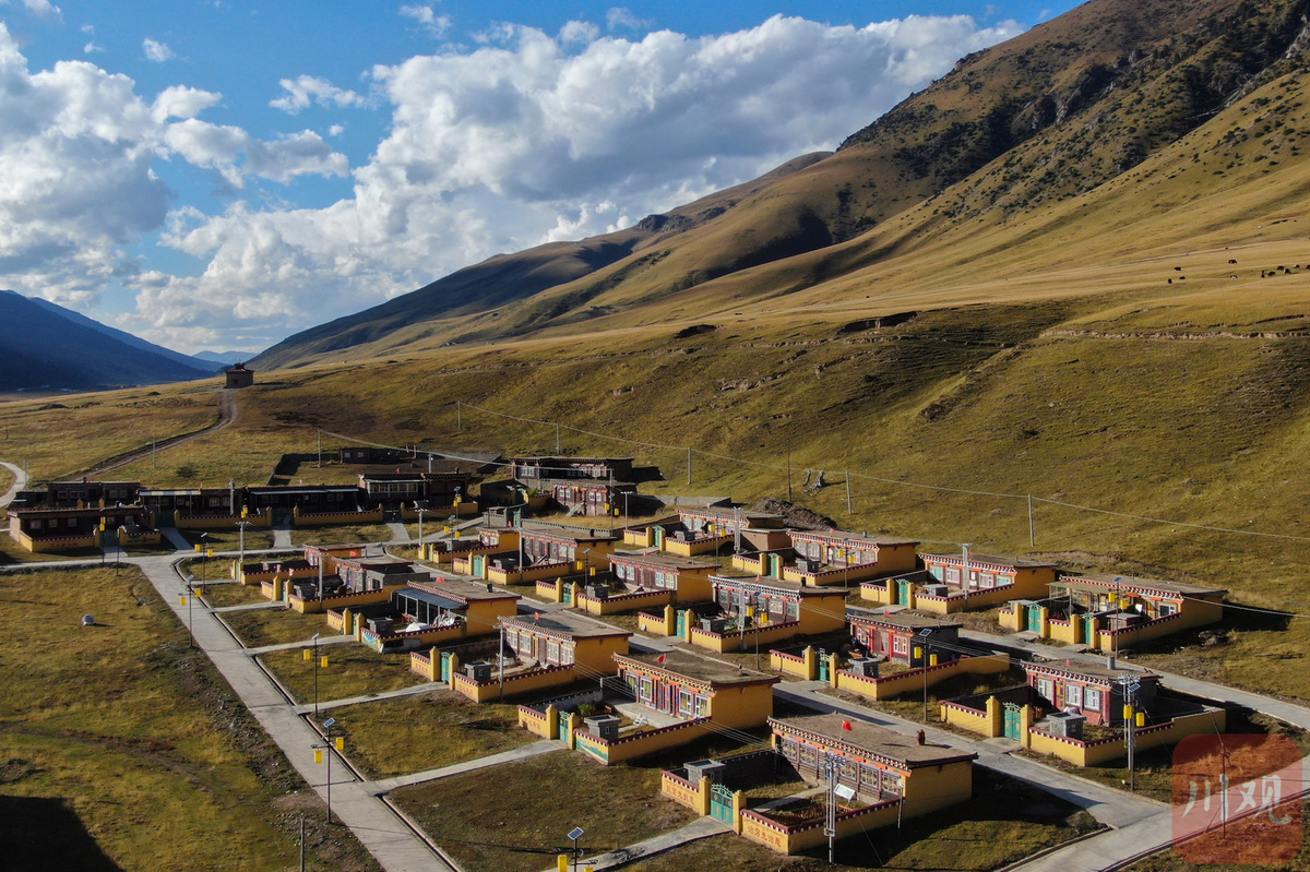 10月16日,德格县错阿镇马达村,阳光沐浴下,40岁的贡贡正在挤牦牛奶。从山上搬迁下来后,这个村集体牧场的公益性岗位,每个月给他带来3000元的收入。