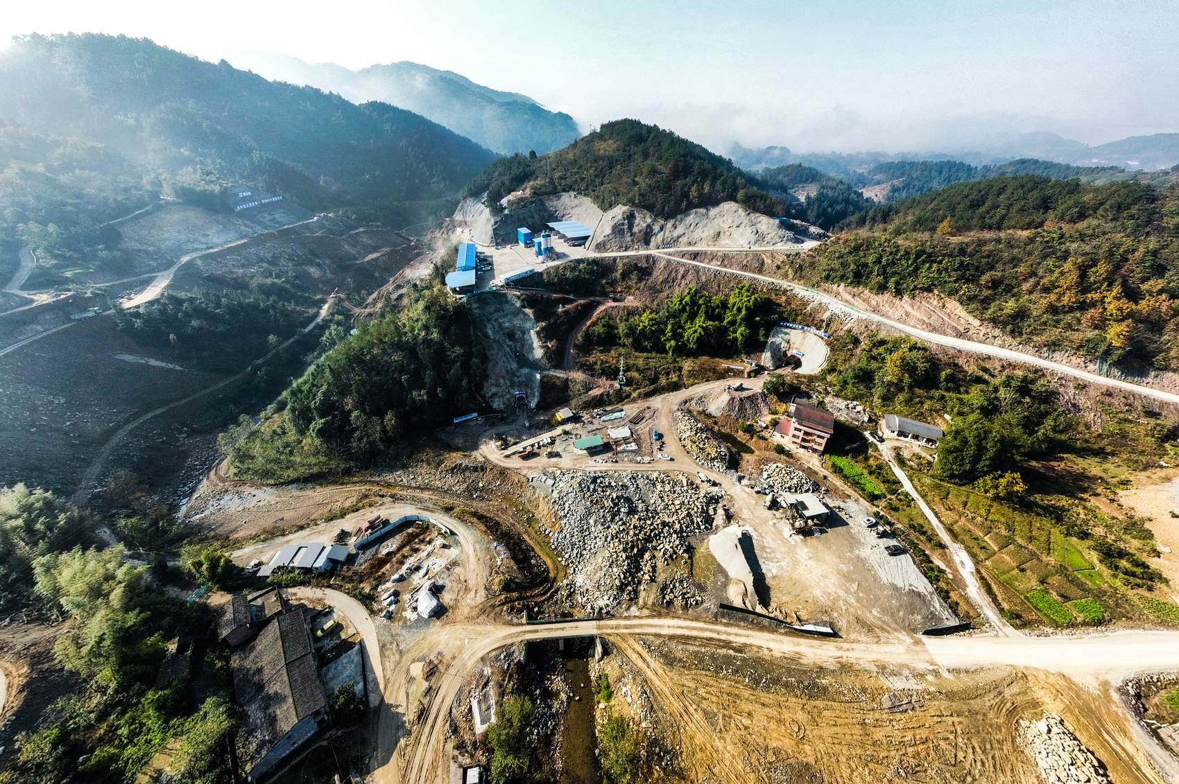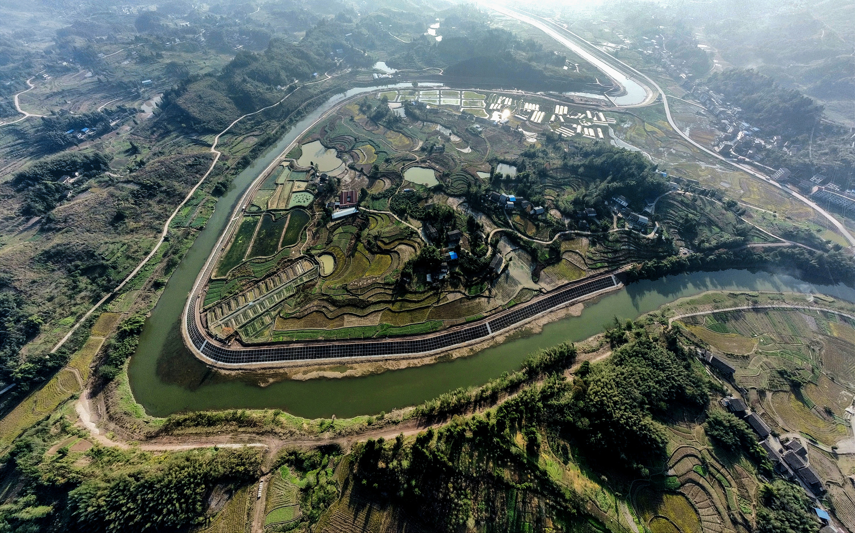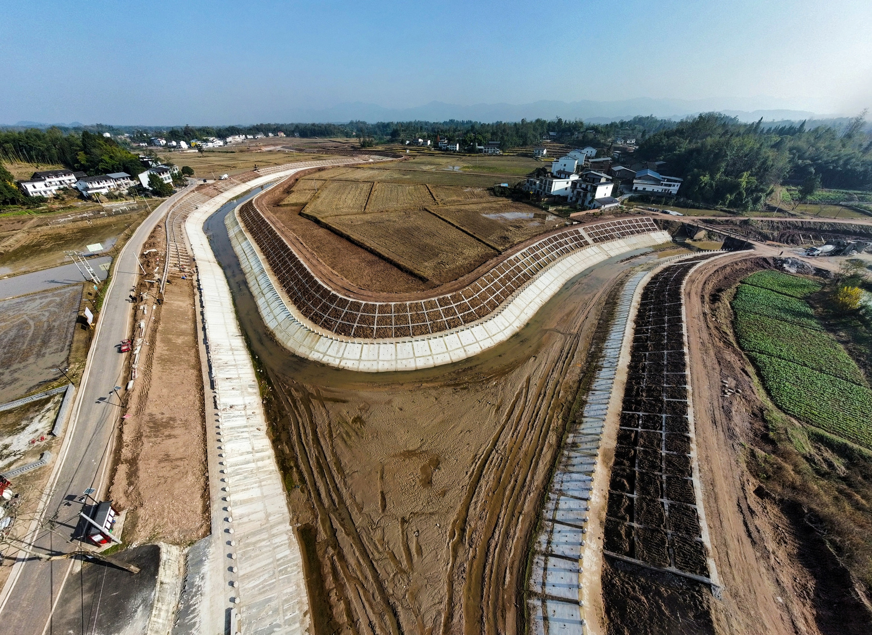 鸟瞰平滩镇铜钵河防洪治理工程。孙伟 摄