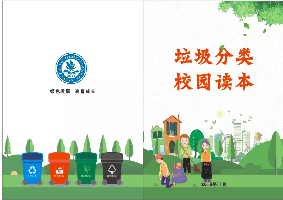 为了让孩子们在潜移默化养成垃圾分类的习惯,梧桐小学别出心裁通过“三书、一文、两阵地”开展学校生活垃圾分类减量工作。