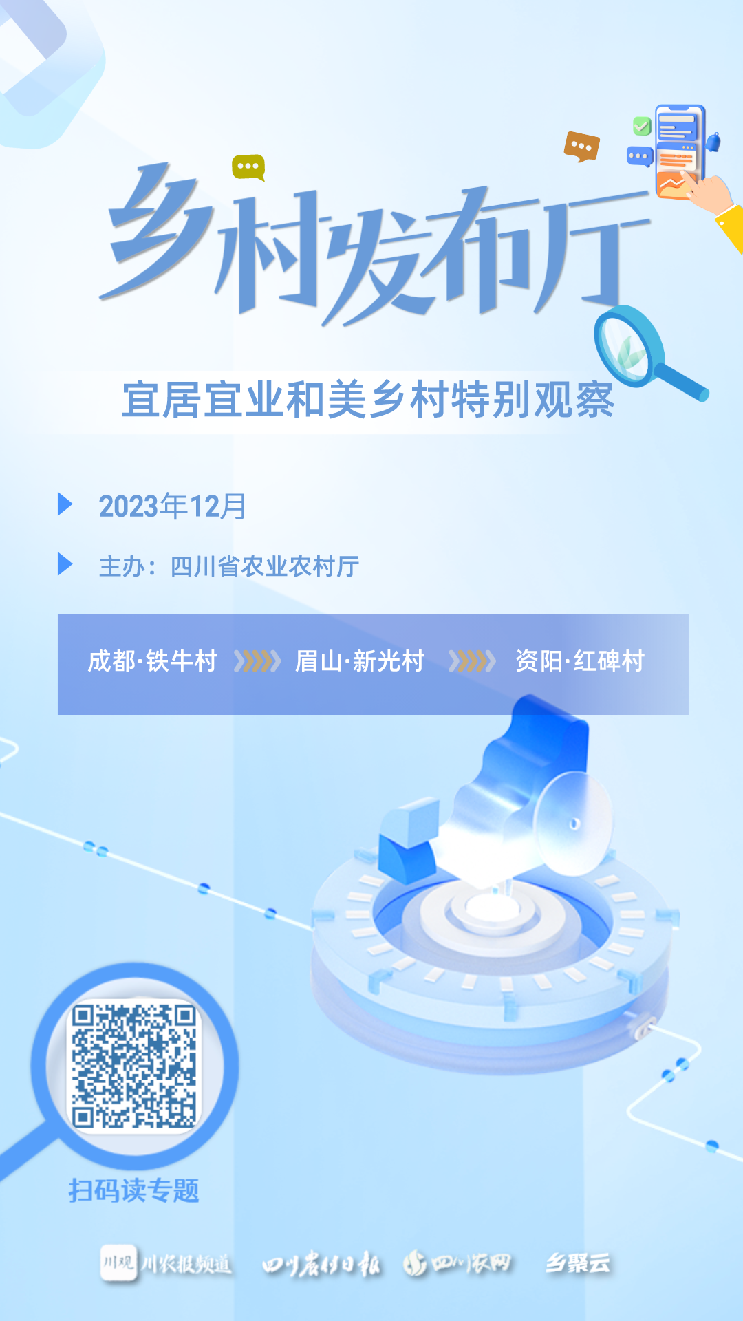 12 月 21日,由四川省农业农村厅主办的“乡村发布厅”——宜居宜业和美乡村特别观察活动在成都启动。
