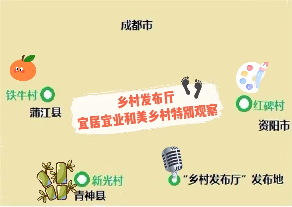 “乡村发布厅”选取了成都市蒲江县西来镇铁牛村、眉山市青神县青竹街道新光村和资阳市临空经济区临江镇红碑村三个代表村落,组织人民日报、新华社及四川农村日报等十余家中央和省市新闻媒体记者一线探访,实地感受四川学习运用“千万工程”经验,建设宜居宜业和美乡村的火热场景。同时,通过田间发布、交流座谈等形式,让媒体记者以更直观、更接地气的角度感受和观察四川乡村,了解各地加快建设生活宜居、发展宜业、治理有效、环境优美的宜居宜业和美乡村的工作思路、举措、亮点和成效,并通过全媒体立体化传播,讲好四川乡村建设的新理念、新举措、新进展和新成效。