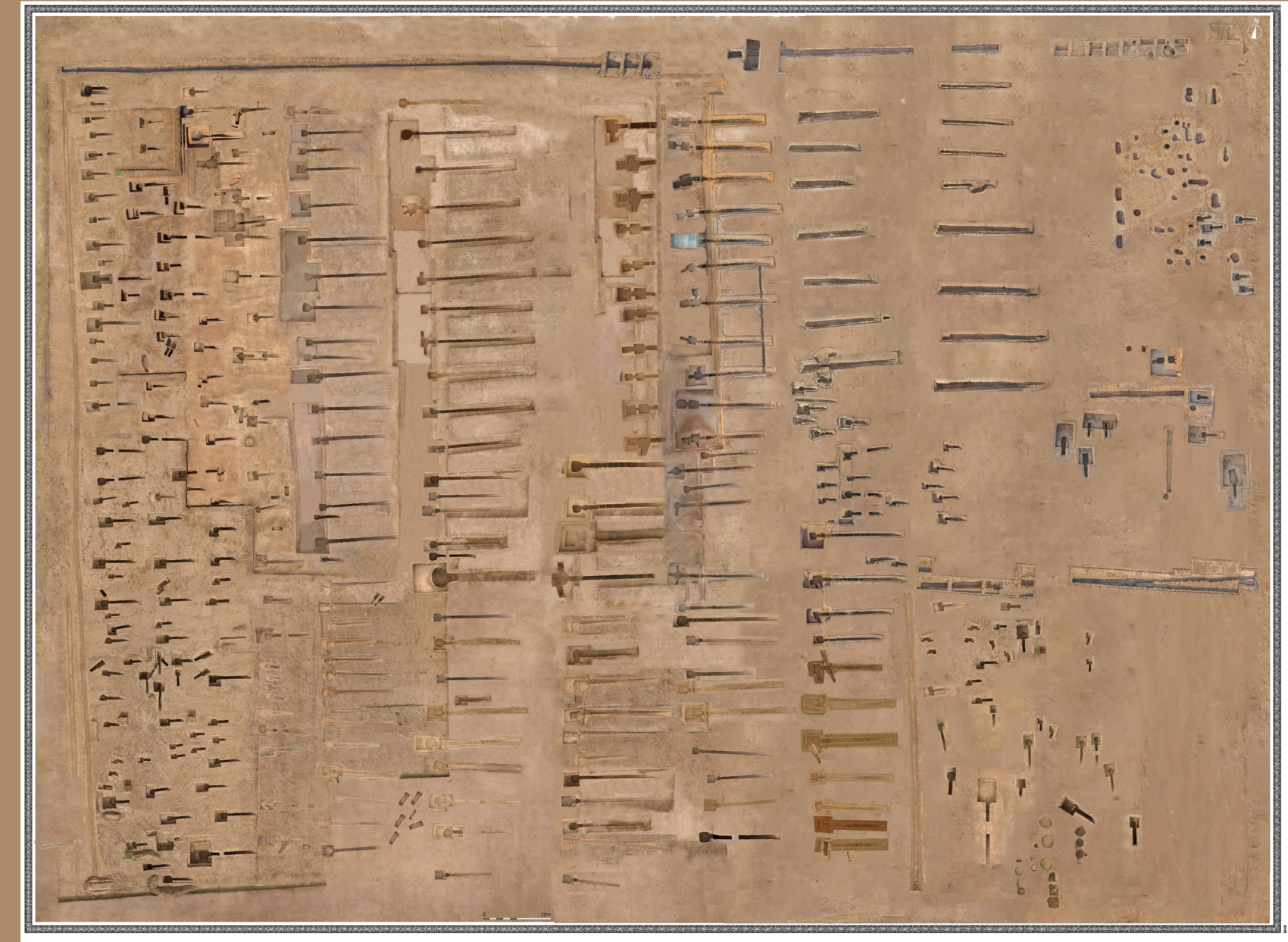 北城村墓地位于陕西省西咸新区,是十六国至隋唐时期的大型部族墓地。目前,已揭露出墓地围沟1处,围沟内墓葬285座,取得重要成果。北城村墓地围沟东西长约350米、南北宽约260米,围沟内墓地面积8万余平方米。