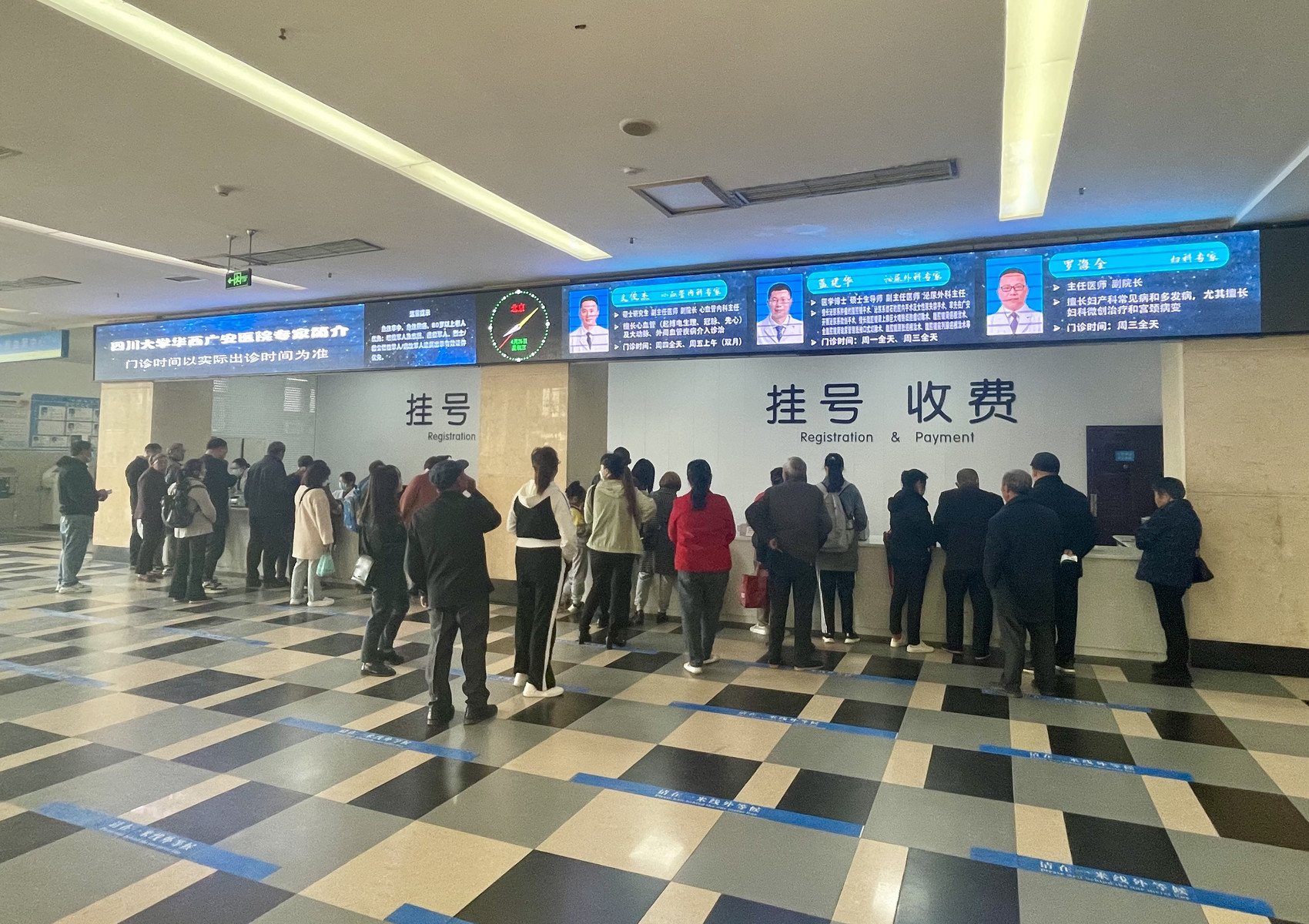 患者们在医院内排队挂号就医。(广安市人民医院供图)