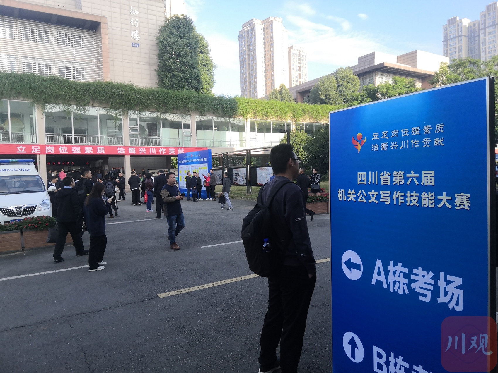 四川省第六届机关公文写作技能大赛前,选手们进入考场。
