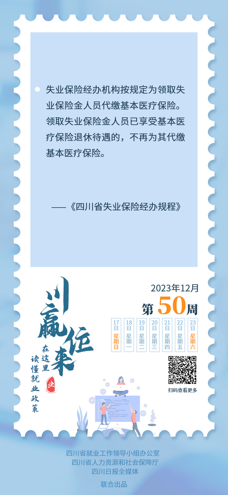 亲爱的朋友,或许你知道,参加了失业保险的人员,在失业期间只要符合条件就可以按规定领取失业保险金。但是,你是否了解,在领取失业保险金的同时,基本医疗保险费是如何代缴的呢?本期“川赢位来·就业政策周历”就和大家一起来聊聊这事儿。