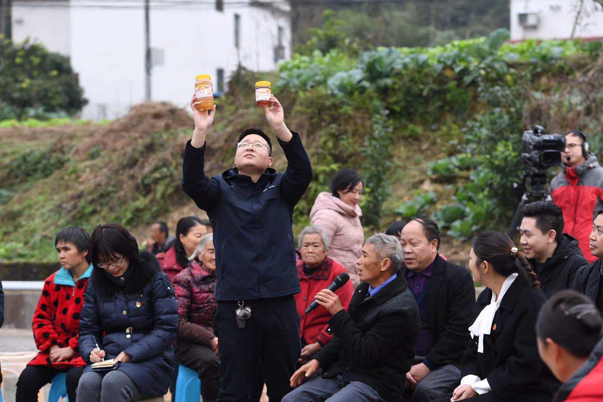 “我的蜂蜜甜”“我的花椒香”“我的柚子个头大”……11月25日午后,四川日报全媒体“百县千村行”采访活动走进泸州市合江县。在榕山镇回洞桥村一排洁白的集中安置新居前,一场带货坝坝会如火如荼开起来,合江县委书记李仁军等合江县的领导干部与乡亲们、基层干部们面对面谈心交流,共话脱贫攻坚战果,共叙乡村振兴大计。