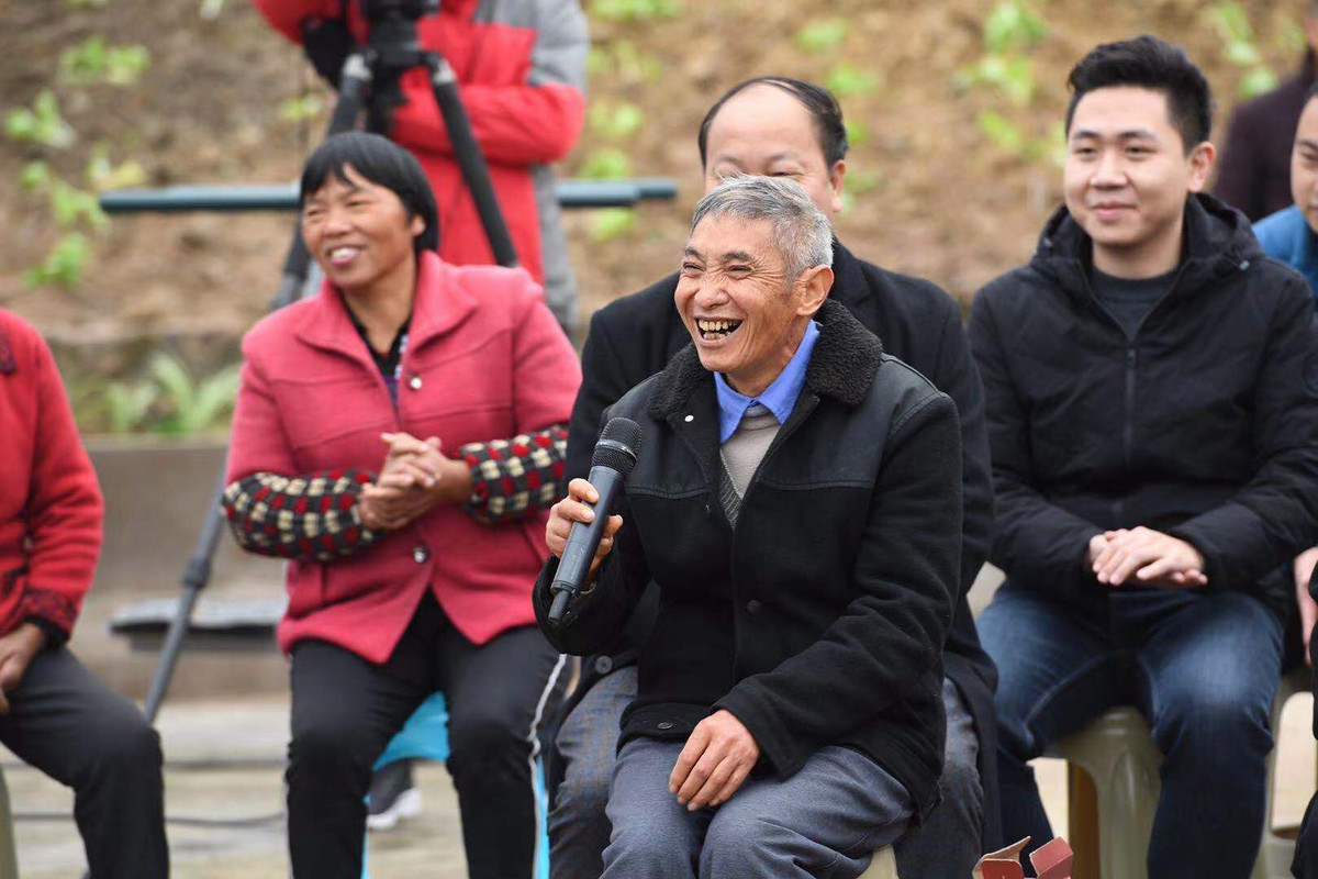 或许是很少有机会面对这么多人推销自己的产品,朱志杨又高兴又紧张,但脸上始终是脱贫后幸福的笑容。