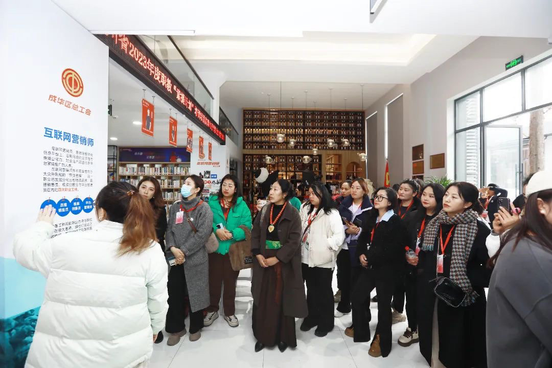 为了让学员们更直观了解电商直播规则,四川可芳四海科技有限公司的麦泓笛讲授了《从平凡到卓越-跨境新手两年咸鱼翻身路》课程。学员还来到成都柒八肆文化传媒有限公司开展电商直播现场学习。从现场参观、导师导学,到学员提问、导师指导,现场教学环节学员收获颇多。