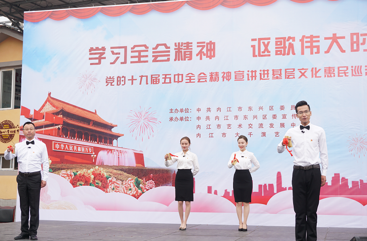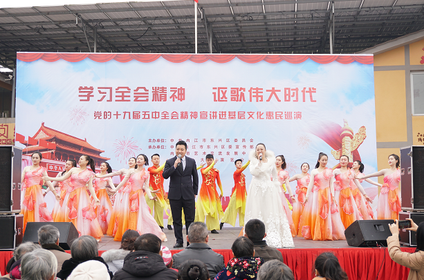 11月25日上午,内江东兴区“学习全会精神 讴歌伟大时代”党的十九届五中全会精神宣讲进基层文化惠民巡演第一站走进椑木镇庙儿坡村。
