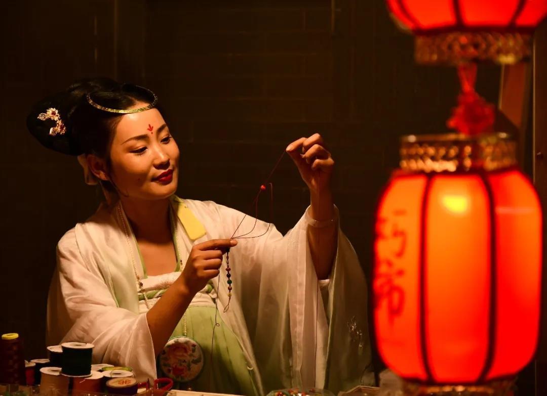 这里的商品琳琅满目,“裁为合欢扇, 团团似明月”一把把玲珑精致的团扇上展现出诗情画意;一支支“银嵌翠蝴”的发簪精美绝伦、一个个芳香扑鼻的香包更是吸引着市民观赏把玩。还有投壶、插花、苴却砚雕刻等体验项目,同样让不少人驻足参与。