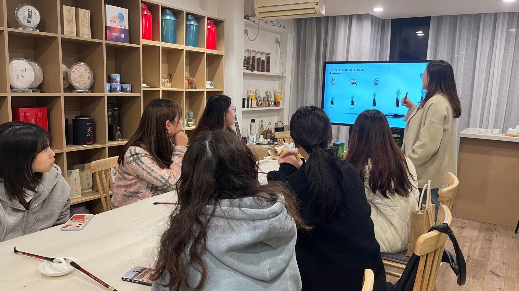 年轻人参加某夜校书法培训
