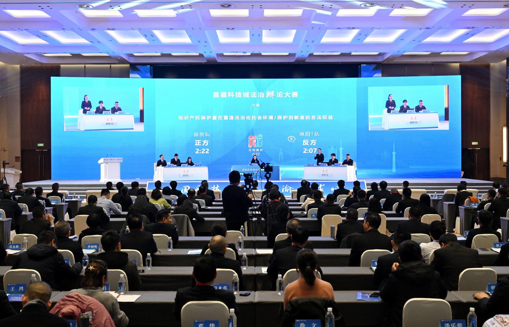 辩论双方以知识产权保护重在营造法治化社会环境还是重在保护创新者的合法权益展开了一番唇枪舌剑,金句频出。最终,绵阳一队以微弱优势获得胜利,为本届科技城辩论赛画上圆满句号,也宣告法治论坛的正式开始。
